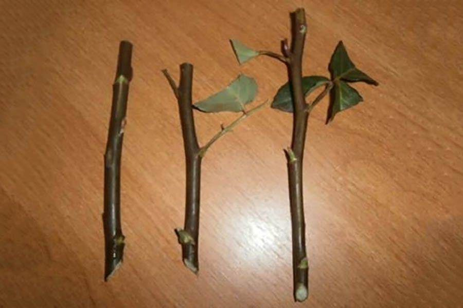 Дължината на резника с три пъпки трябва да бъде около 6-9 см. За да се предотврати прекомерното изпаряване на водата, е важно да се отрежат листата с 1/3 от дължината им, да се отстрани листът отдолу. Трябва да се помни, че разрезът трябва да е прав и равномерен и да се намира на 1 см над бъбрека. Преди засаждане резниците се поставят в разтвор на хетероауксин и се оставят да киснат 2 дни.