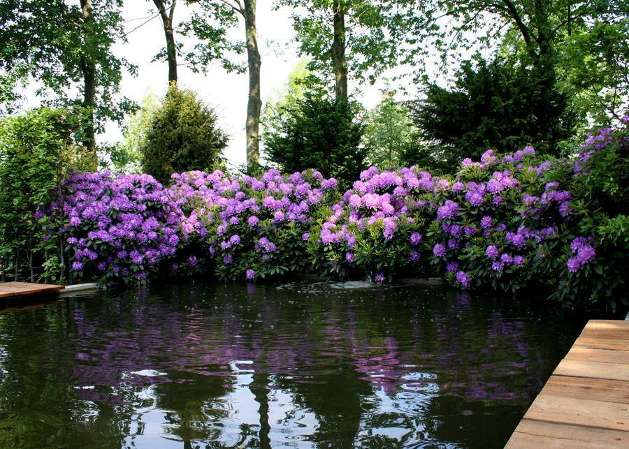 Груповото засаждане на няколко различни сорта рододендрон с различни периоди на цъфтеж ще изглежда невероятно и ще се чувства добре. Ако искате разнообразие, тогава можете да засадите наблизо декоративни джуджета иглолистни дървета, които ще осигурят естествено подкисляване на почвата с разпадащите се игли.
