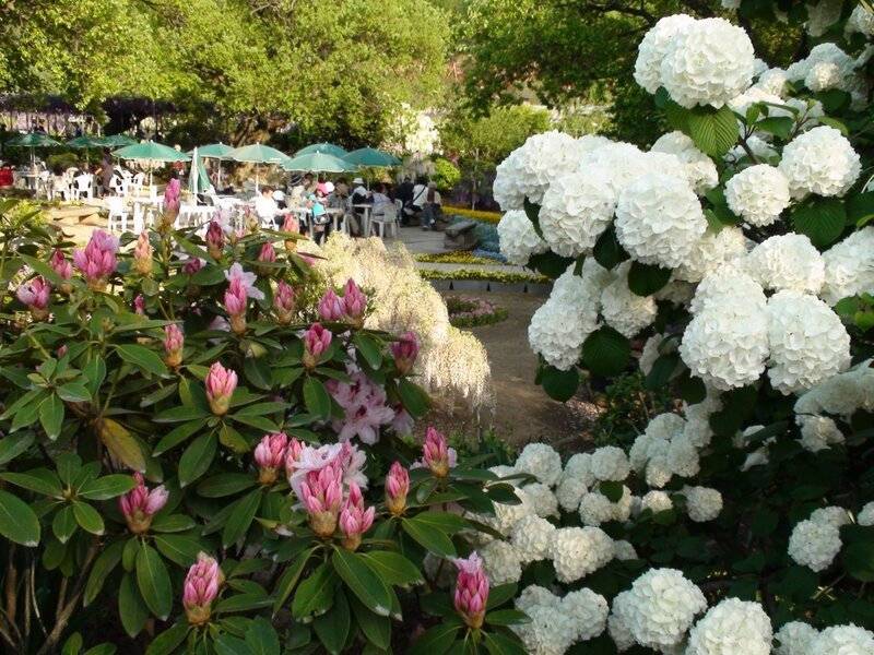 Можете да изберете хортензия като съсед. Неговите сортове метлички са подходящи за широколистни рододендрони, а дървесните хортензии се съчетават добре с вечнозелени сортове.