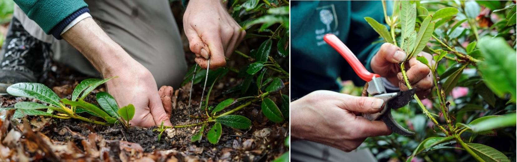 Резници за размножаване на рододендрон се събират в началото на юни от едногодишни издънки. Долните листа се отстраняват от клоните, отрязани под ъгъл от 45 градуса с дължина 10-12 см, като в горната част остават само 2-3. След това резниците се засаждат в земята на разстояние най-малко 5 см един от друг, като се изгражда оранжерия над тях. След около 2-3 месеца разсадът ще даде корени.