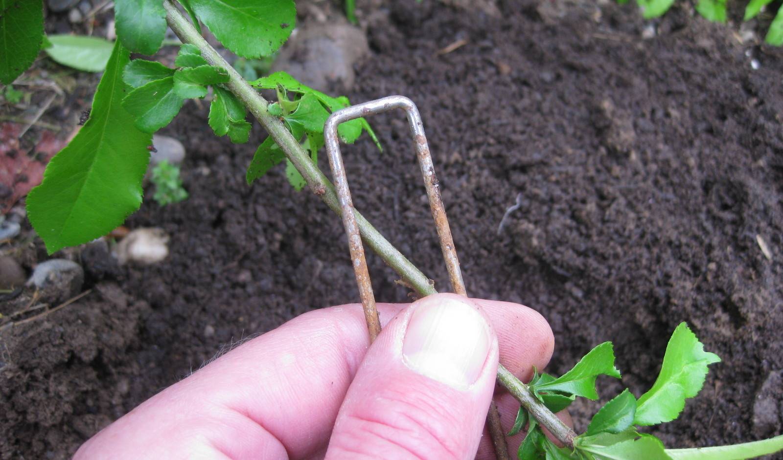 - През пролетта наклонете младия летораст и го поръсете със земя.