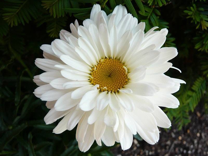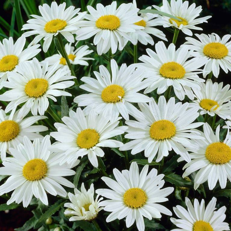 Гигантският храст е покрит с съцветия с диаметър 10 см. Сърцевината на цветето е жълта, а езичестите цветчета са снежнобяли. За дългосрочен цъфтеж растението се засажда на слънчево място с питателна почва.