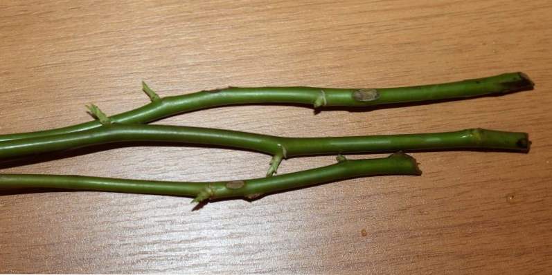 Резниците се отрязват от средната част на издънката, която вече е лигнифицирана, но в същото време все още е във фаза на активен растеж. Говорим и за багажника.