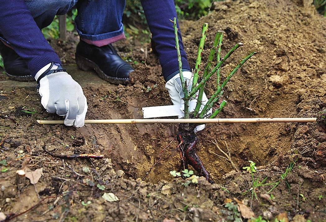 - Корените се спускат в дупката, така че да се задълбочи мястото на издънката с 5 см.