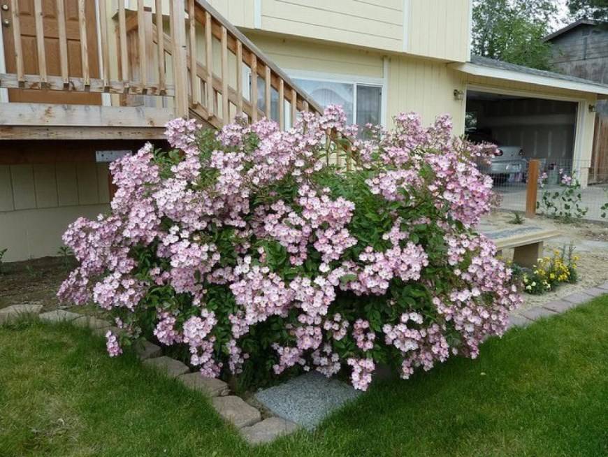 При спазване на всички агротехнически правила, височината на храста може да достигне 3 метра. Листата са с малки размери. Декоративно растение може да се използва като растение за катерене. Цветовете са оформени в бяло-розов цвят. Сърцевината е бяла, а венчелистчетата са розови с лилави или черешови ръбове. На всеки клъстер се образуват от 20 до 50 недвойни цветя, излъчващи приятен и устойчив аромат.