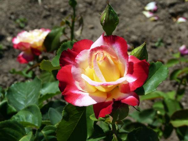 Великолепна роза, преливаща се в различни нюанси на червено и жълто, ще създаде празнична атмосфера във всяка градина. Rose Double Delight е един от най-популярните сортове на това цвете.