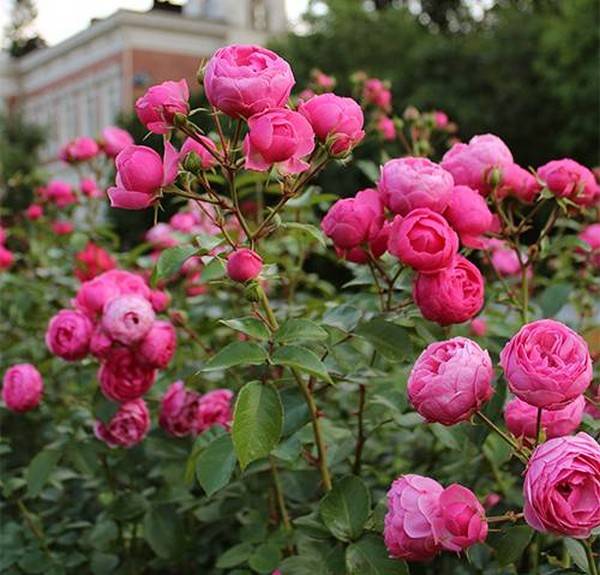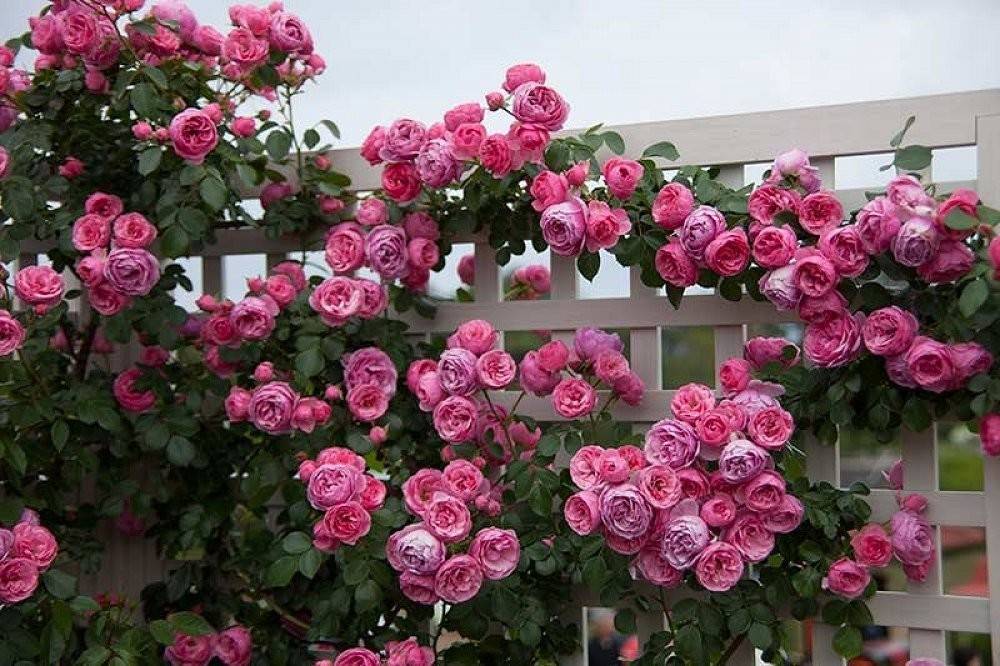 Арки и решетки също са украсени с помпозни рози. След като сте завързали правилно и сте осигурили храста с опора, можете да постигнете факта, че той ще се разтегне и ще се превърне в роза за катерене.