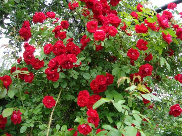 Катеренето на Роза Сантана е кралската украса на сайта. Това е чудесен избор за градинаря.