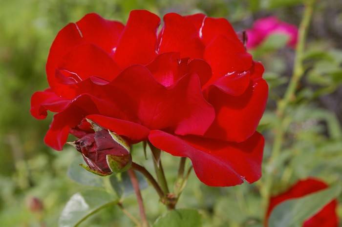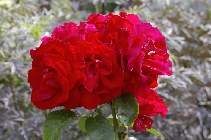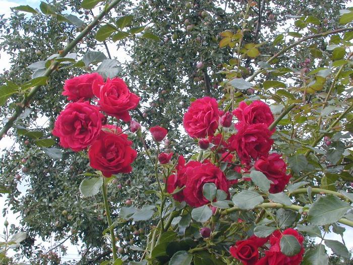 Катерещите рози Сантана изглеждат много впечатляващо. На храстите им с лъскава зеленина през лятото цъфтят големи яркочервени цветя. Сортът прецъфтява, затова радва с цъфтежа си от юни до октомври.