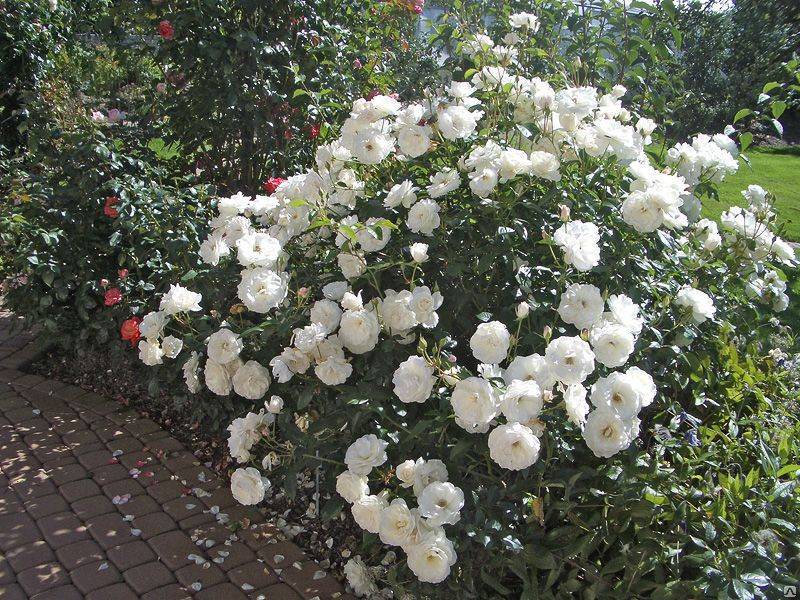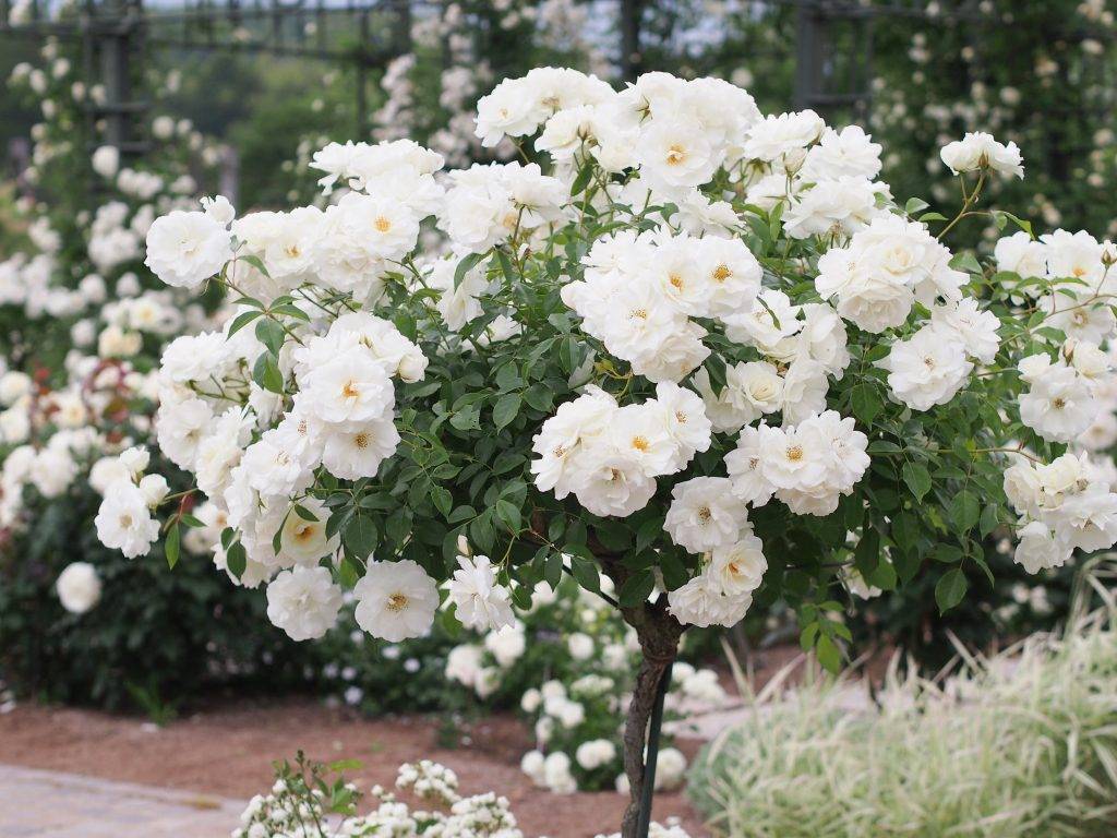 Бялата роза за катерене Schneewitchen, произхождаща от Германия, е един от най-деликатните примери за класическата декорация на градини и паркове. Тя има деликатен аромат и нежни, не много големи, кипящи бели цветя. Разсадът често се продава под името Айсберг.