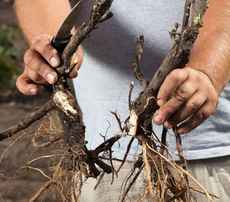 - На следващата вечер трябва да изкопаете храст и да го разделите на 2 или повече части с ножици за подрязване, така че всяко отделение да има достатъчен брой корени и поне 2 пъпки.