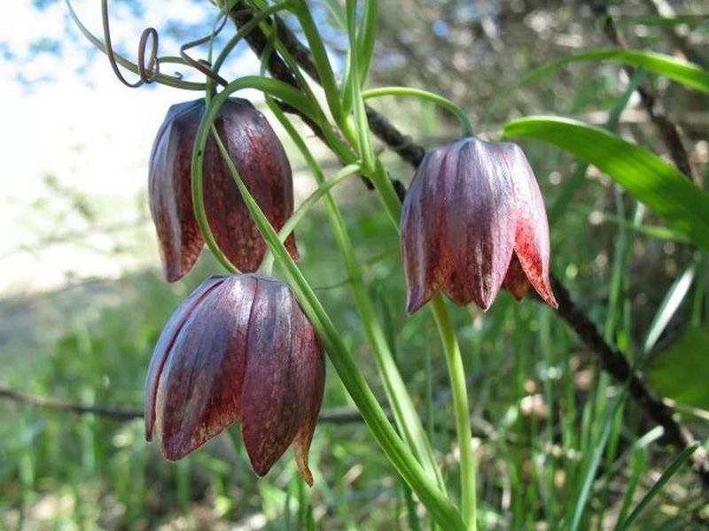 Стъблото на маломерния представител расте само до 60 см. Особеността на вида е пожълтяването на листата веднага след цъфтежа. Красивите цветя са в лилав или тъмно бронзов цвят. Фаринксът е ярък, шахматна шарка е едва забележима върху венчелистчетата. Цъфтежът настъпва в началото на юни или последното десетилетие на май, всичко зависи от климатичните условия. Пикът на цъфтежа настъпва в средата на месеца. Размножава се с луковици.