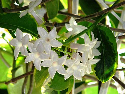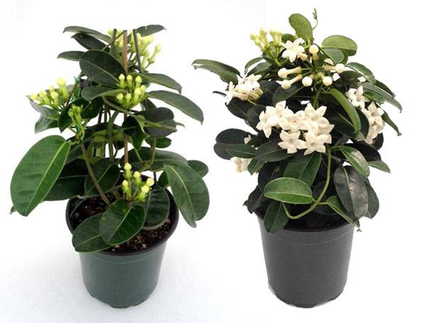 Домашните видове - Stephanotis floribunda - произвеждат снежнобяли цветя, събиращи се в корони от пет до седем парчета. Техният аромат не е толкова изразен и не причинява дискомфорт.
