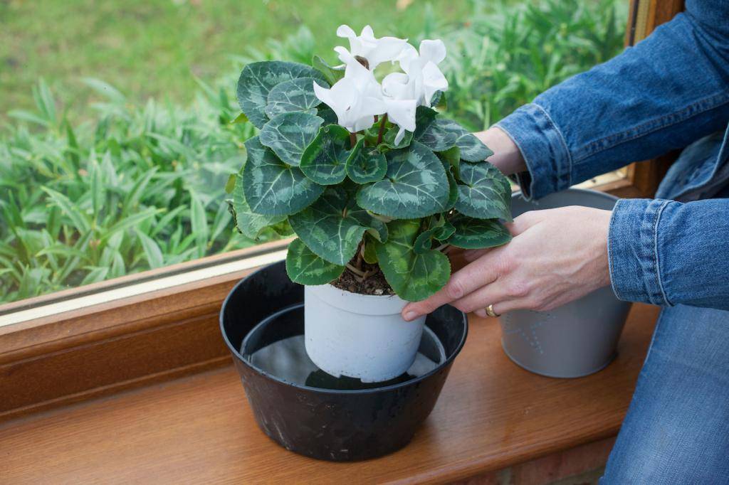 Грижата за цикламата след цъфтежа включва правилния режим на поливане. Важно е да се навлажни почвата, като се предотврати изсъхването и стагнацията на влагата.