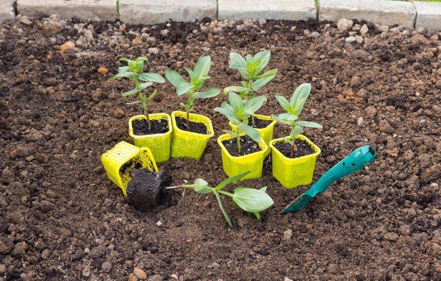 Засаждане на разсад циния на открито