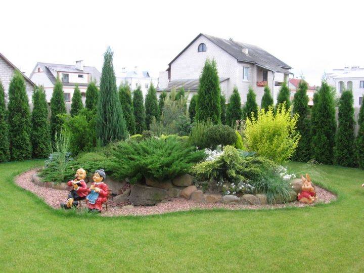 Прекрасни декоративни огради, композиции от храсти и цветя с участието на туя могат да украсят всяка градина