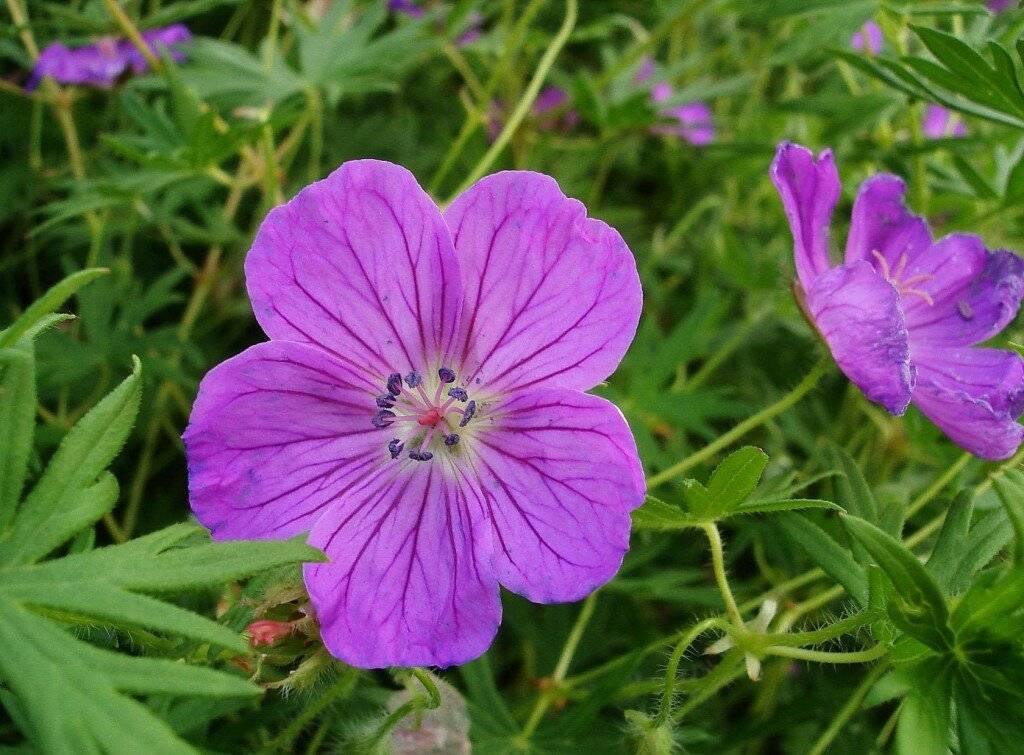 - цветята на крана са големи, наситено лилави на цвят с подчертани вени;