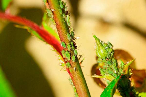 С априлското затопляне в градината се появяват не само цветя, но малки зелени насекоми по розата. Те пълзят из вътрешността в търсене на храна, намират розови храсти. Енергичната активност на вредителите води до отслабване на растенията: листата започват да пожълтяват, да се извиват, пъпките се деформират и масово се рушат.