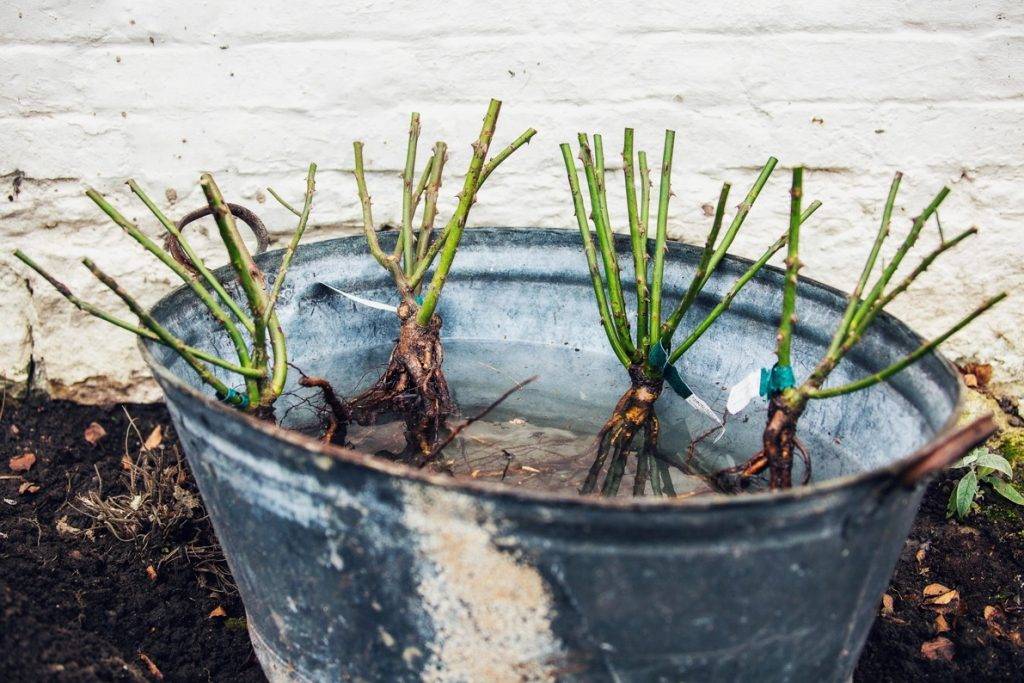 Trước khi trồng, cây con được đặt trong một thùng chứa đất sét hòa tan trong nước ấm (trong 15 phút) và trong 30 phút. trong dung dịch thuốc tím (để khử trùng rễ).